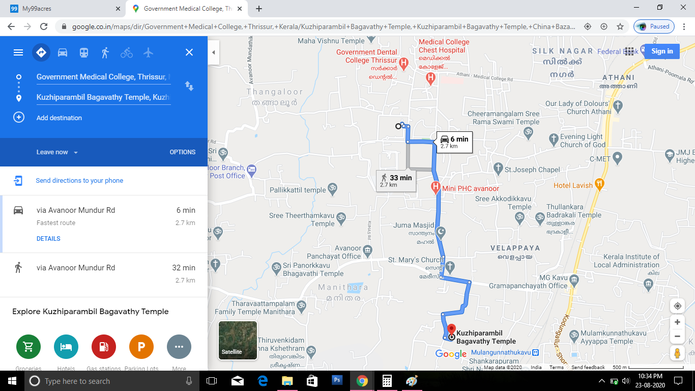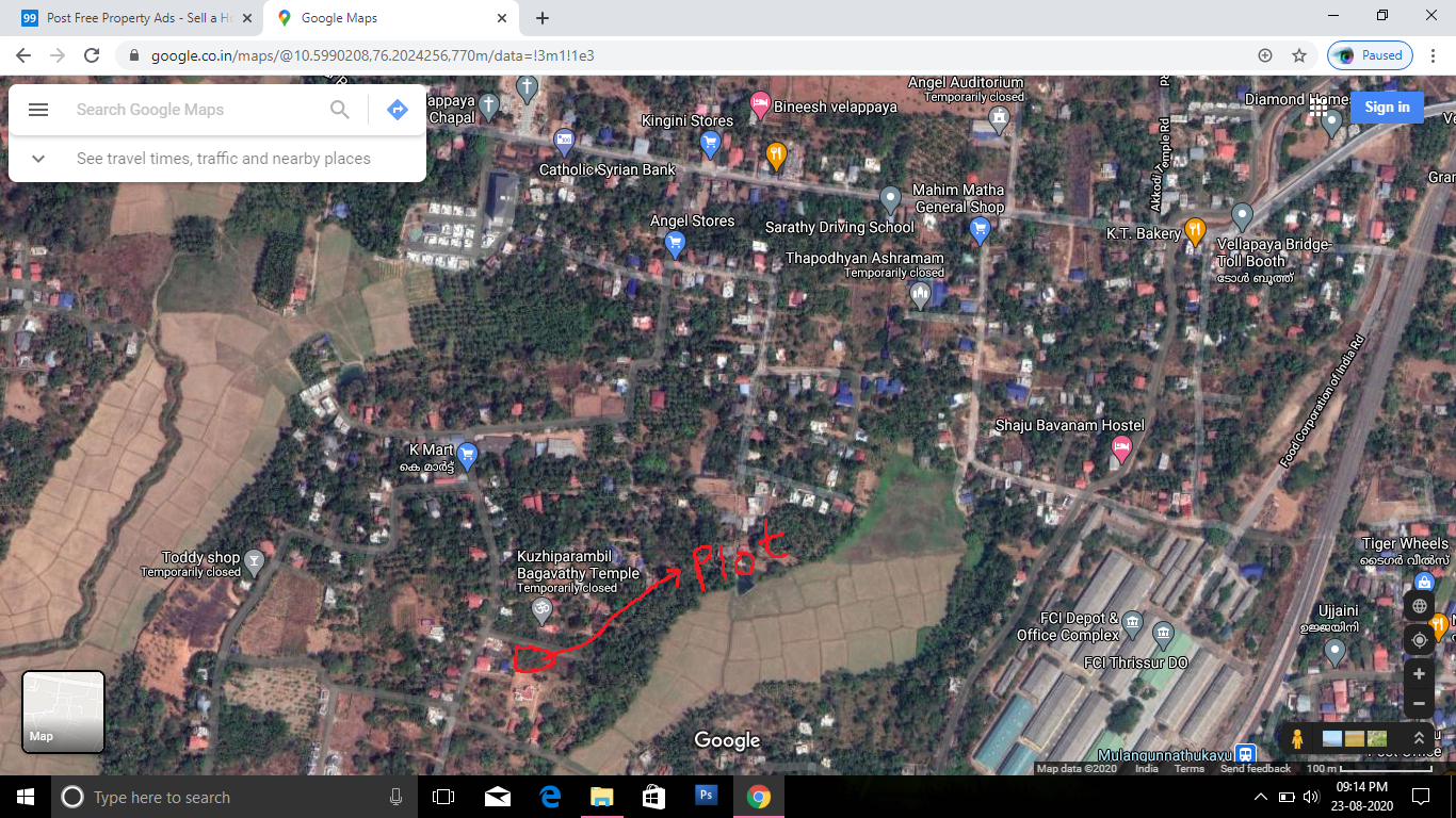 11.2 cent residential plot, less than 1 km from china bazar bus stop. 2.7 km from govt. Medical college. Near kuzhiparambil kudumba kshetram. Frontage 140 ft. Killanur village, velappaya.