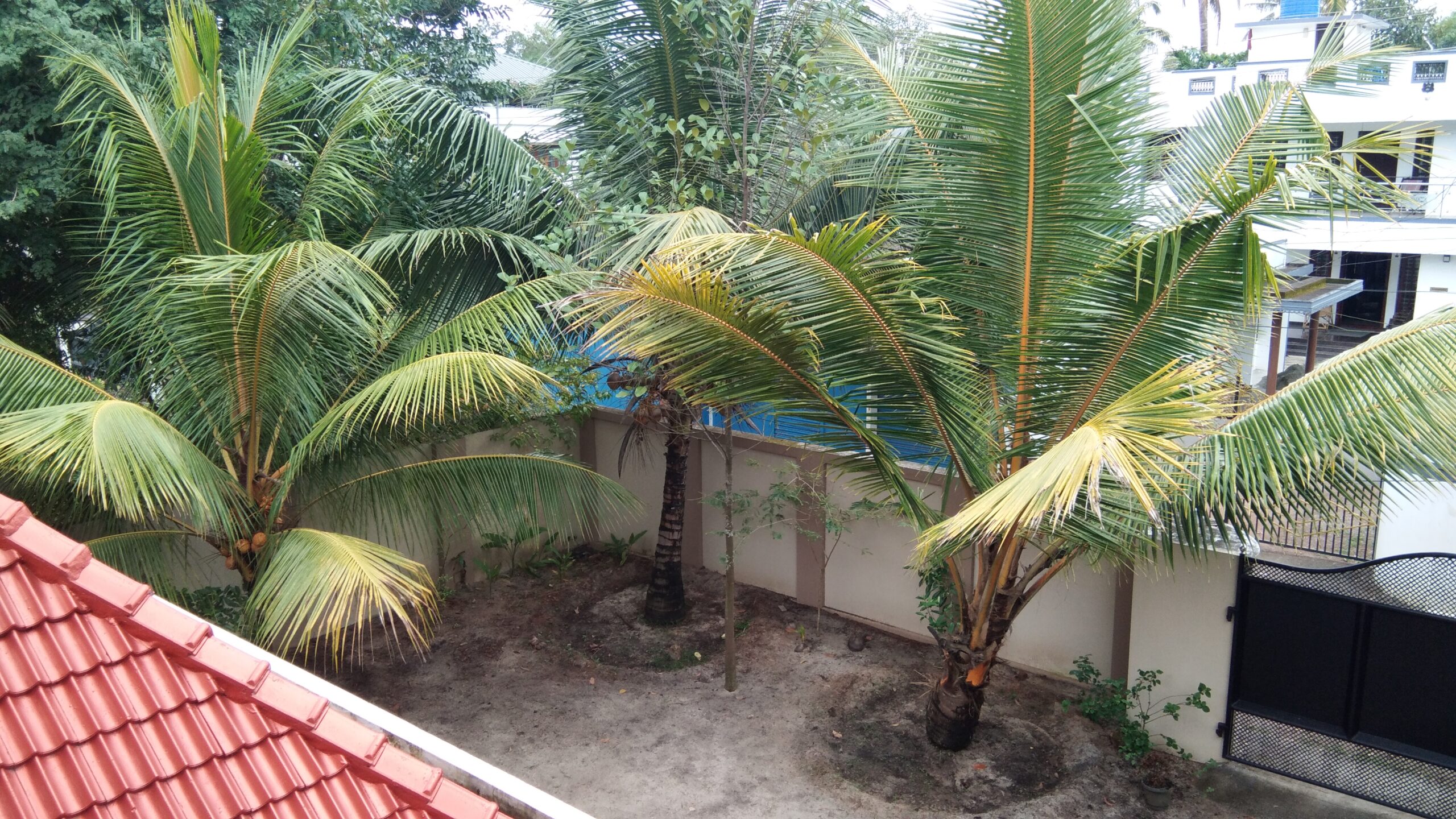 Total three spacious Bed rooms with Built in cupboards and dressing table, Two are with attached bath rooms and one common bath room, two living rooms, one is on ground floor and other is on first floor. Spacious kitchen and dining area. There is an open terrace and covered terrace, first floor room has a small balcony. All the floors are finished with granite slabs, only the branded materials are used for electrical and sanitary works. well maintained house on 20 cents of land with four side compound wall and the truck entering entrance.
